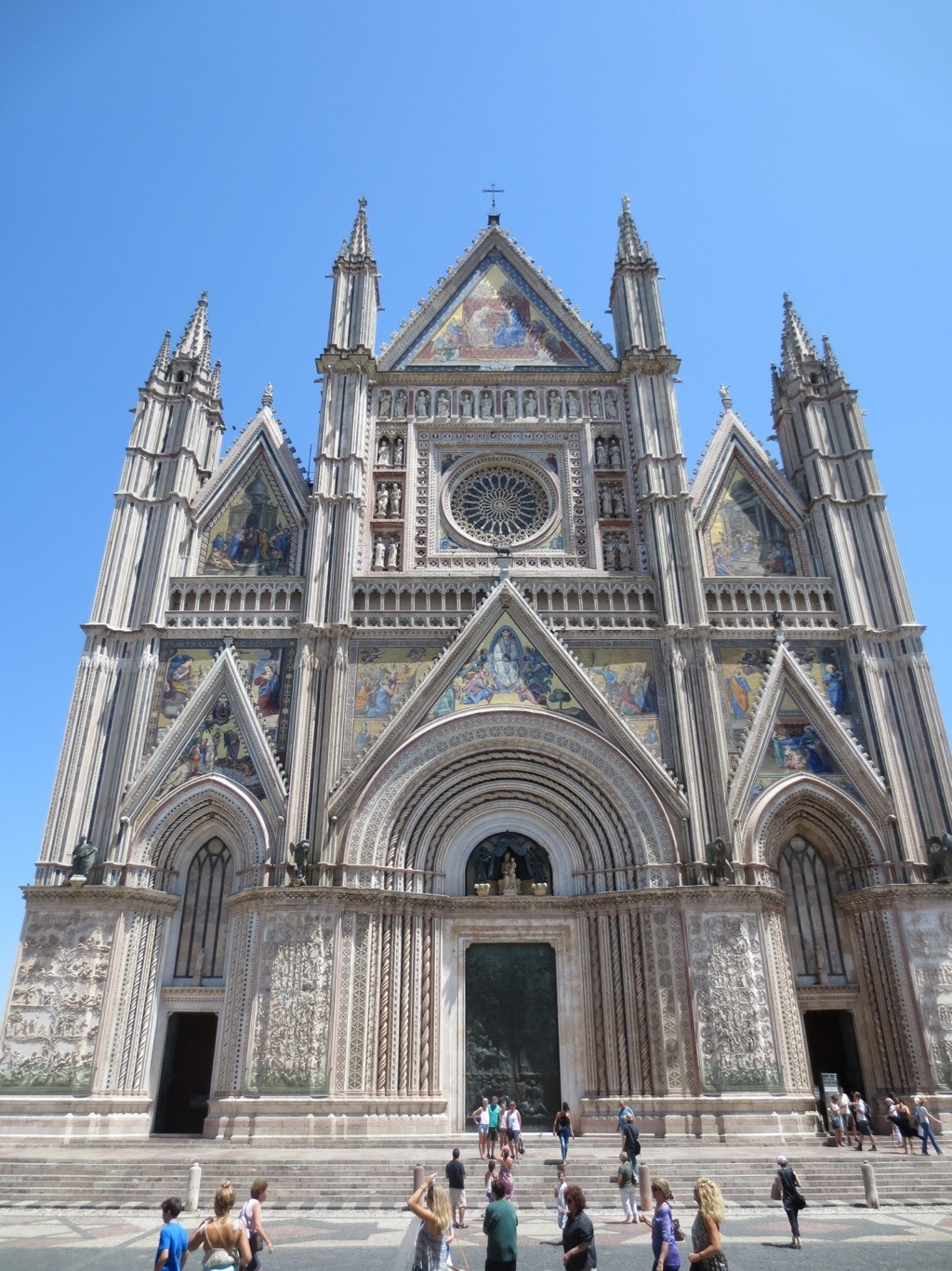 Back to Orvieto: Since it is a ZTL area (zoned for limited traffic, and we do not have a permit) we parked the car and walked up hill towards the duomo. The exterior had a beautifully ornate front and the sides were the dark green and white marble. We could not take pictures inside so I recommend looking at these images to get a better sense.