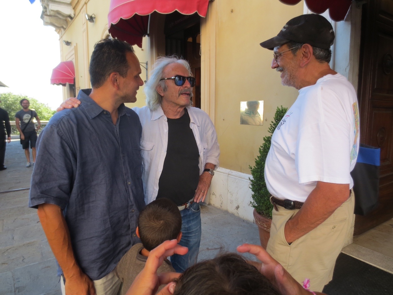 We did some shopping in the city center (a Furla bag for me, Benetton clothes for the kids, and more Stefanel purchases since their 50% off sale started a few days ago.) While relaxing outside the Brufani Hotel, we met Enrico Rava, a famous Italian jazz trumpeter. Papa told him about the time he saw him perform in Montreal, and Mr. Rava was very sweet with the kids. We saw his pictures on the wall in a nearby cafe next to Carlos Santana and other musicians.