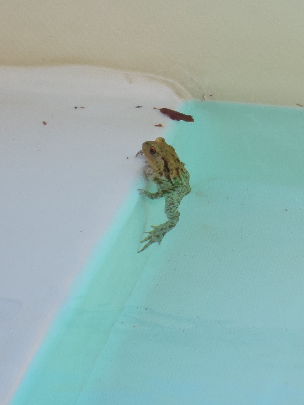 Last night there was some hedgehog type thing running around which curled itself up next to the door. This morning, there was a little frog in the pool which Miss M rescued with a net and he did an army crawl, versus hopping, to safety. And this afternoon we were ant free but had a gecko visit us in the living room!