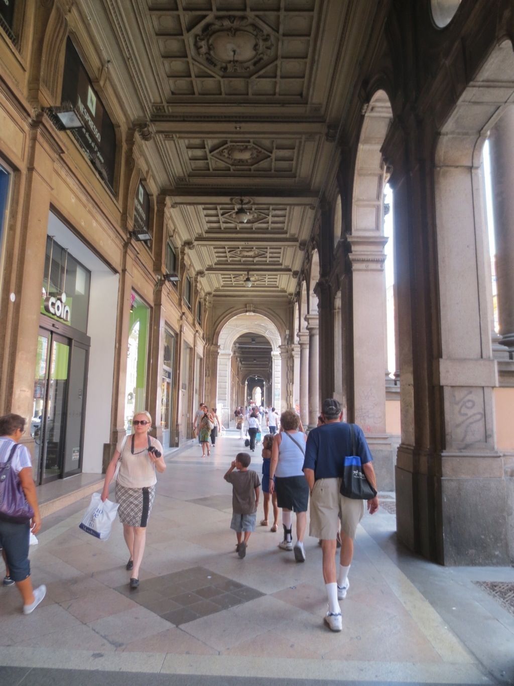 We arrived in the region of Emilia-Romagna, to the City of Bologna, parked the car (Paul had researched the closest parking garage) and knew the Nutelleria would be 2 blocks away. We got there, and it was closed and replaced with a cafeteria style eatery. So disappointing! We walked to the city center to see two of their leaning towers, the large piazzas, and so many of the sidewalks are covered.