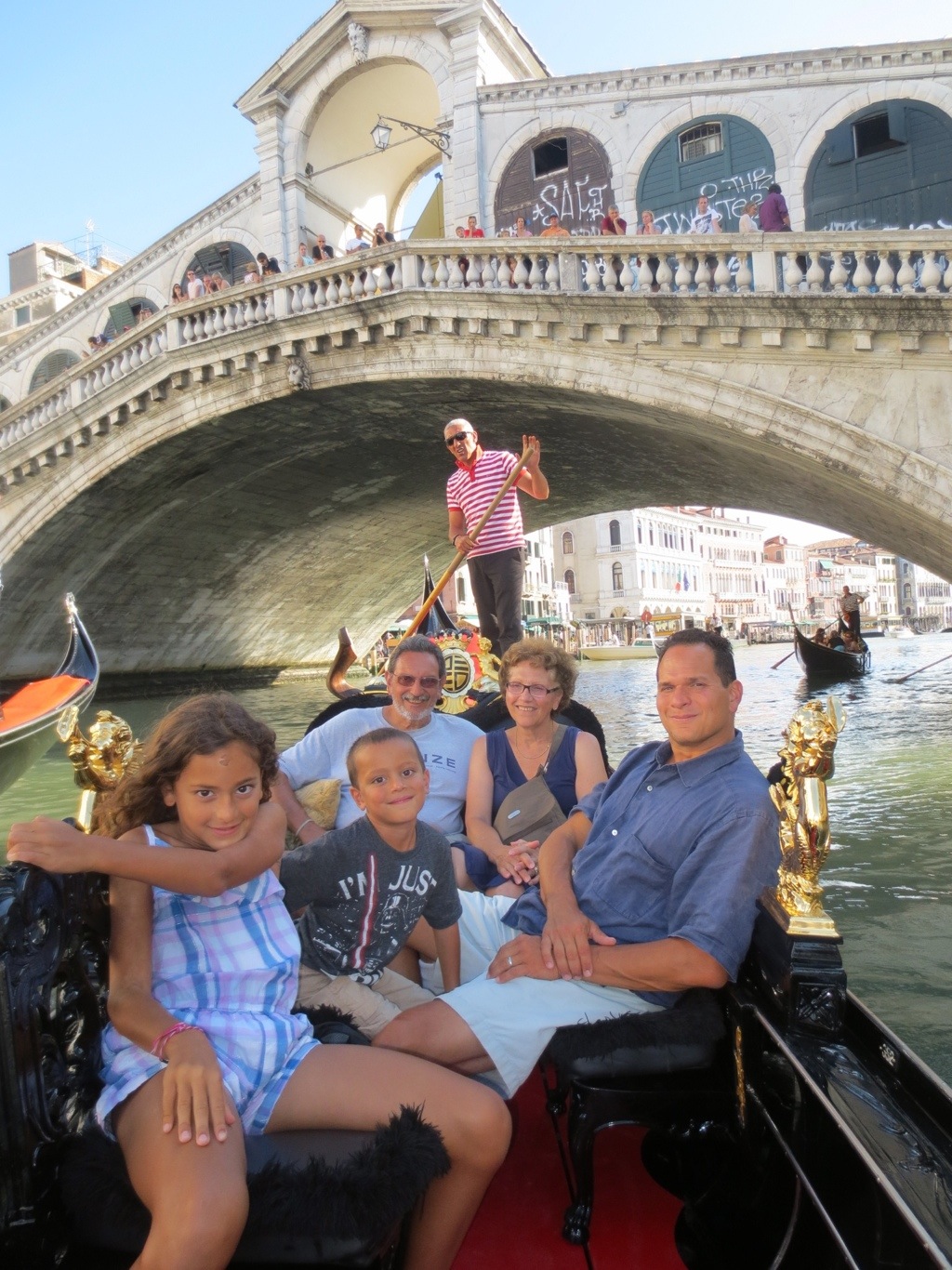 We ended the day with a gondola ride. Miss M had been begging for a gondola ride since we arrived in Venice, and it was nice and relaxing to glide through the canals and under the Rialto Bridge.