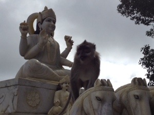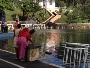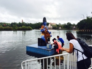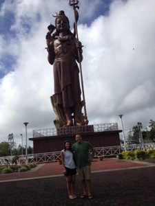 Next, as we drove down the two lane highway, rising up out of the distance we saw Mangal Mahadev, a massive Shiva Statue. The statue is 108 feet and is the highest known statue in Mauritius (and one of the 50 highest statues in the world). Around the bend we experienced Grand Bassin, also known as Ganga Talao. Grand Bassin is a holy lake for Hindus which represent 60% of the Mauritian population. The lake rests in the crater of an extinct volcano. It is said that the water inside the lake communicates with the waters of the holy Ganges of India. Beside the lake there is a temple dedicated to Lord Shiva and other Gods including Hanuman, Lakshmi, and others. Many families were there making offerings of coconut milk, bananas, coconut and more, to the gods and wading in the holy lake.