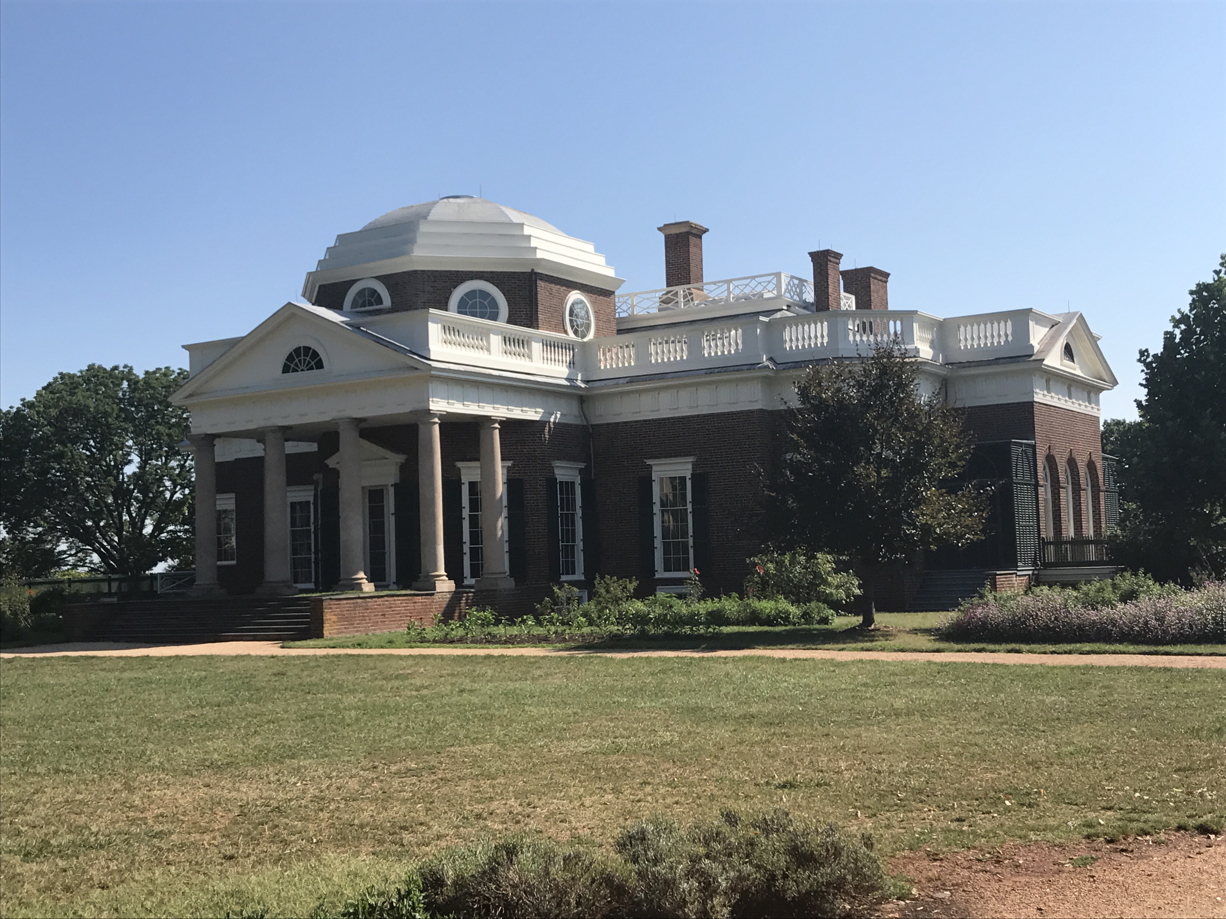 This morning we explored Monticello – Thomas Jefferson’s home. We took three separate tours of the three story home, Jeffersons gardens, and slavery at Monticello. There was a table set up (in the shade) where the kids could play games that jeffersons grandchildren played at the time, and you could try your hand at calligraphy with a quill pen. Overall very well done and glad we went first thing in the morning since it’s super hot in the sun!