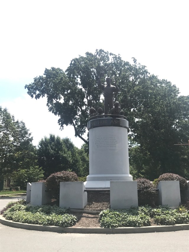 Big D pushed the one man sled on the University of Richmond football field, Miss M played basketball on the Richmond Spider’s basketball court, and then we drove down Monument Ave to see the huge statues erected to Confederate heroes and Arthur Ashe (born in Richmond).