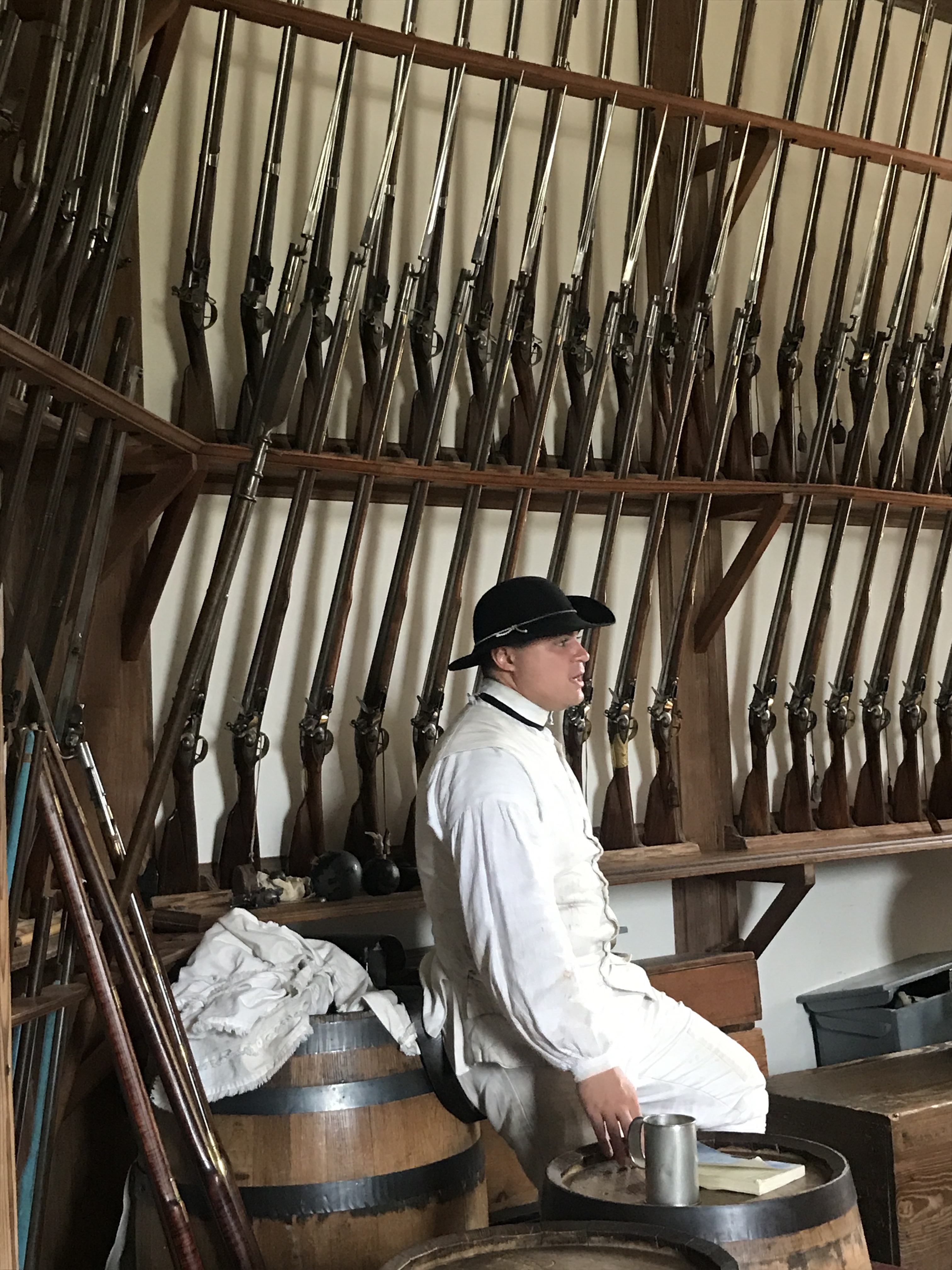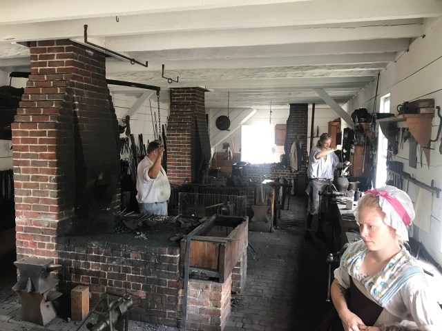 We visited the blacksmiths shop, saw how wigs and textiles were made, we visited the press room and bindery, and spent some time in “the magazine” artillery shed learning about weapons.