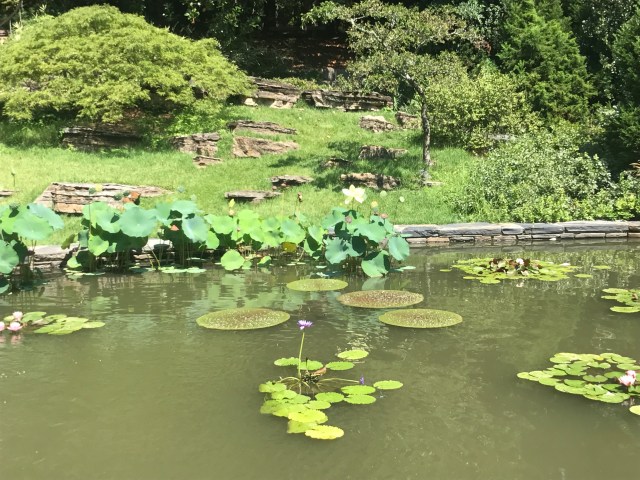 Since it wasn’t raining, we headed black to Duke to visit their beautiful gardens and walk through campus. The gardens were loaded with flowers and had largest lilly pads I’ve ever seen. Duke’s campus is really beautiful – reminds me of Hogwarts!