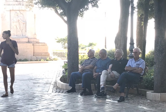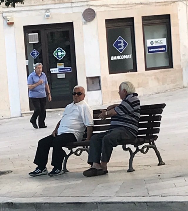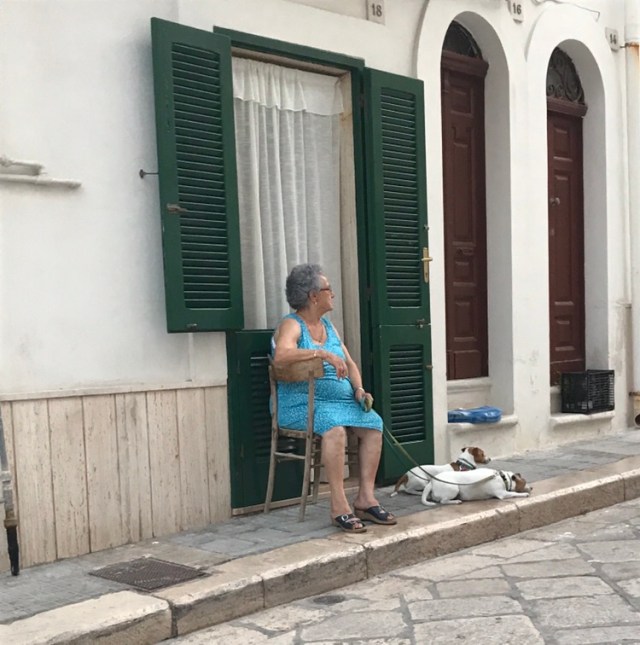 Older people – there are a lot of short, older people in Alberobello and the surrounding towns. A lot of old men and women just sitting around, mostly in the shade avoiding the heat. We’ve gone out to dinner, and then returned several hours later only to see the same group of older people sitting in the same spot, people watching and chatting with each other.