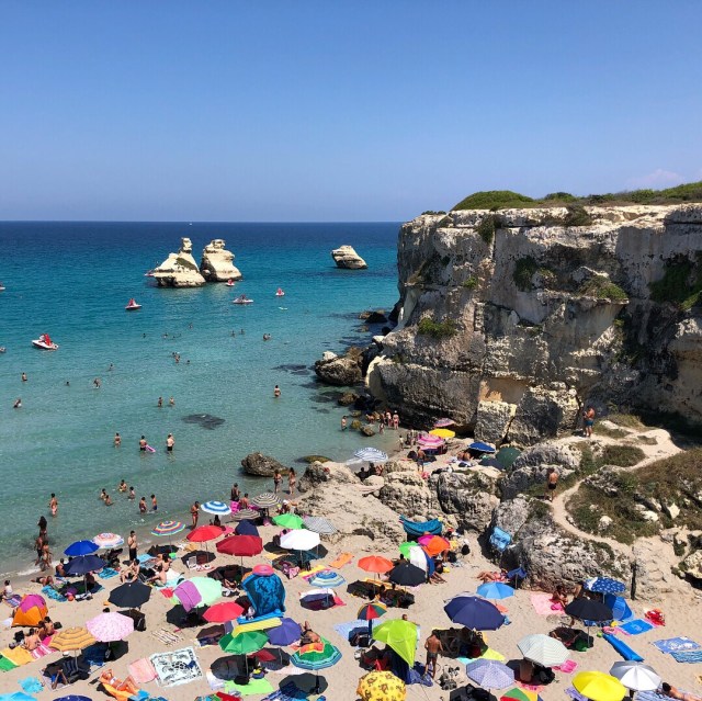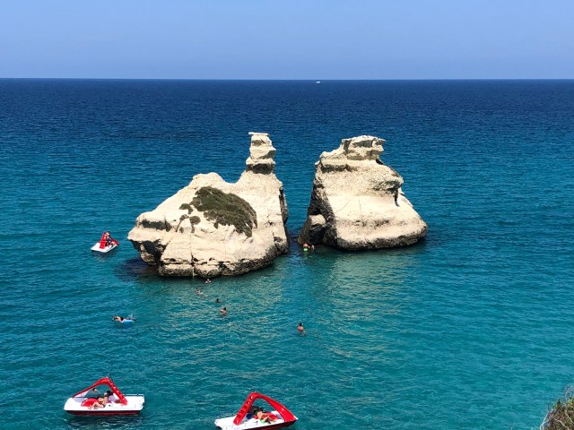 Fabrizio, our host at his family’s B&B, gave us a lovely breakfast of croissants from Dentoni (the Pasticceria we ate every meal at yesterday), cereal, watermelon, a white melon that is a cross between honeydew and cucumber, gigantic figs from their garden, and prickly pear fruit from their garden. We spent over an hour talking with Fabrizio, and it turns out he played (American) football for one of Italy’s teams years ago. I say this in the nicest way: he’s a big dude. Very sweet, and very interested in American sports. He wanted us to speak English with him so he could practice, but we want him to speak Italian so Paul can practice! He said he misses playing football and gets motivated listening to music. He showed Big D a video on his phone that D had seen before — it’s sack after sack. They bonded over the love of tackling.