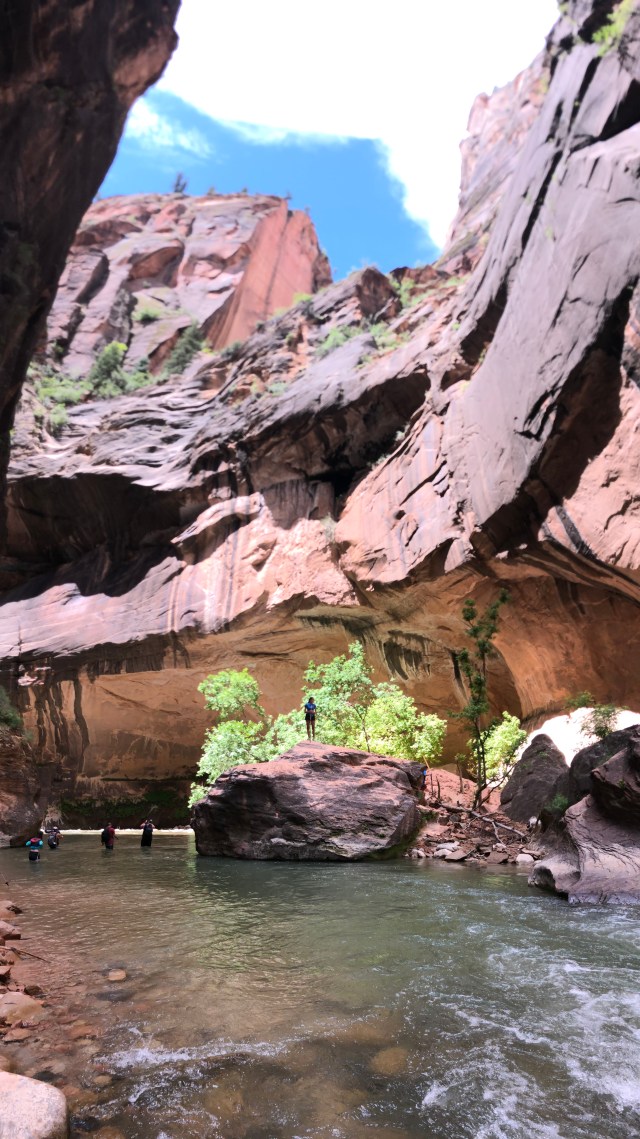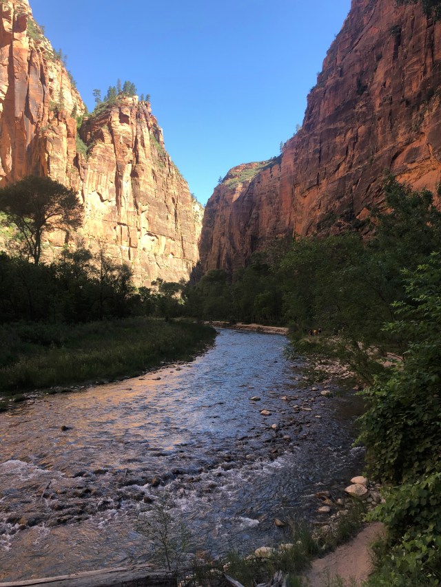 If I was going to do The Narrows again, I would wear old sneakers versus water shoes since the water shoes provided some protection from the rocks, but sneakers would have been sturdier. And I wouldn’t wear a bathing suit under my dry fit clothes — just the dry fit shorts would have been fine. Live and learn!