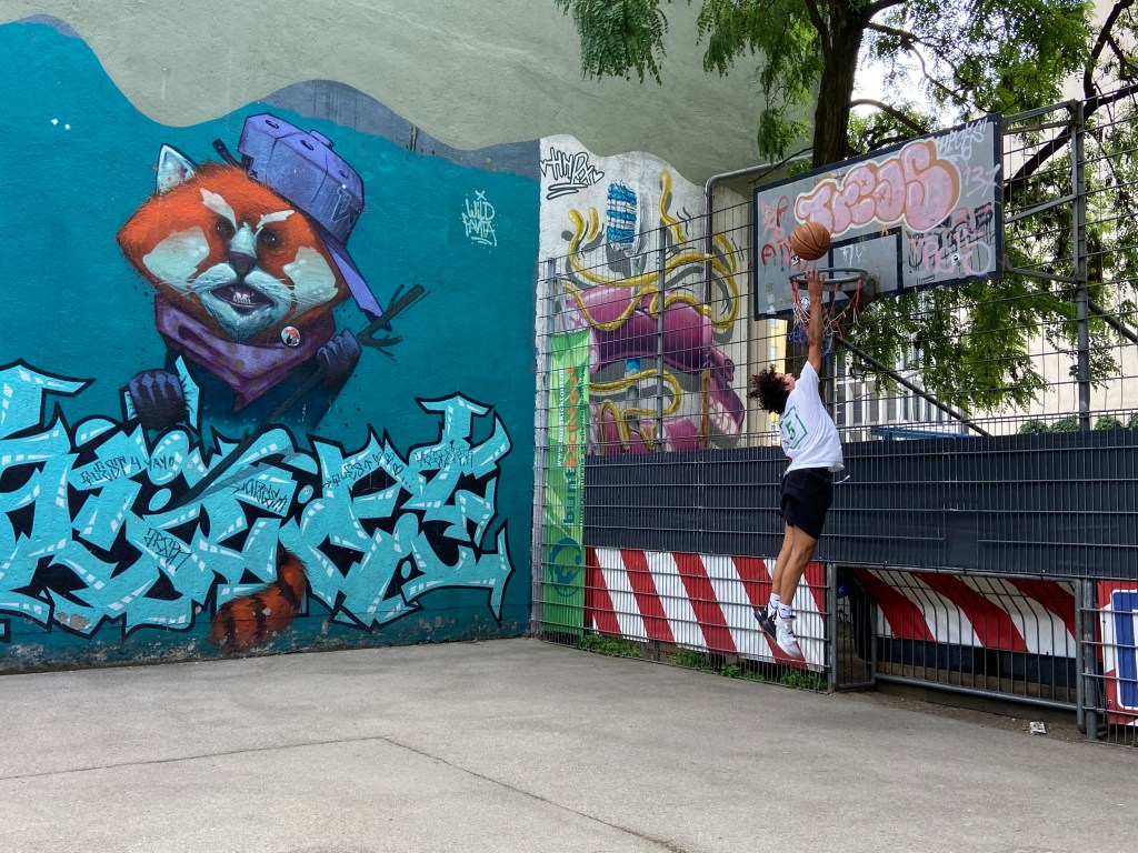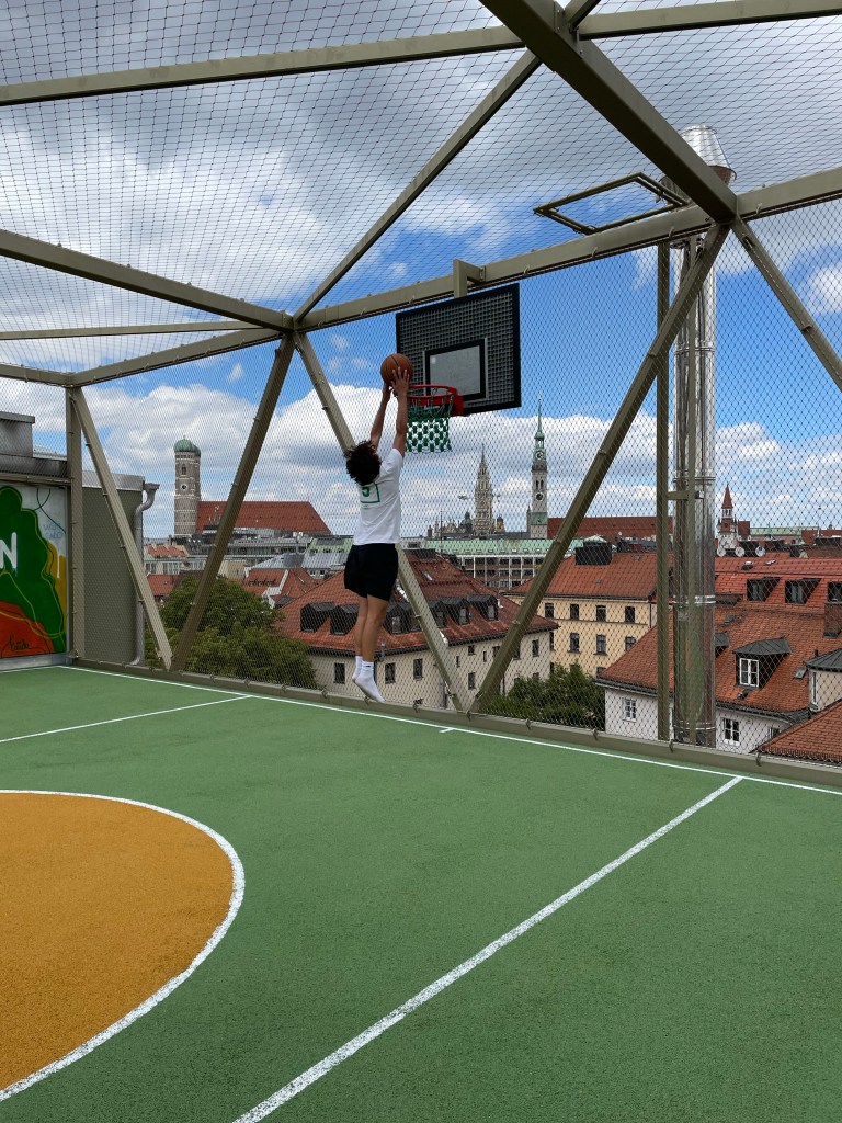 We went back to the courts from yesterday for a family game of futsal at the roof top court and then shooting hoops at the ground level outdoor court. D was in his happy place.