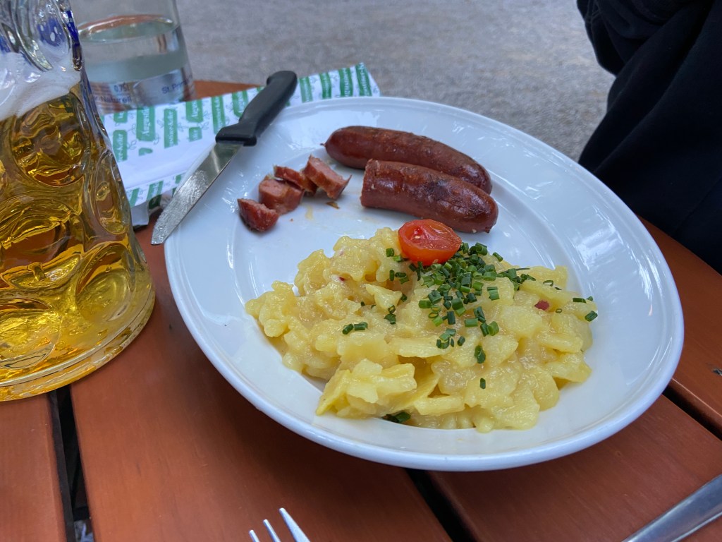 Every eating establishment in Munich offers pretzels on the menu. Breakfast at the hotel consisted of pastries, fruits, yogurt, meats and cheeses, eggs, and of course two types of sausage and a stand of pretzels. They are everywhere.