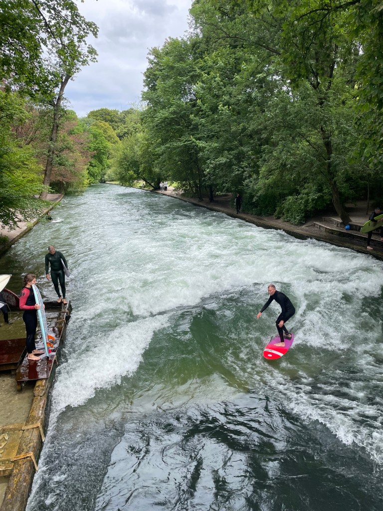 Late morning we walked to the English Garden, one of the largest public parks in the world and larger than Central Park. We enjoyed watching the surfers at the entrance to the garden at the made-made Eisbach River. I was tired from all the walking the day prior so we didn’t stay long at the park and headed instead to the nearby University of Munich campus.