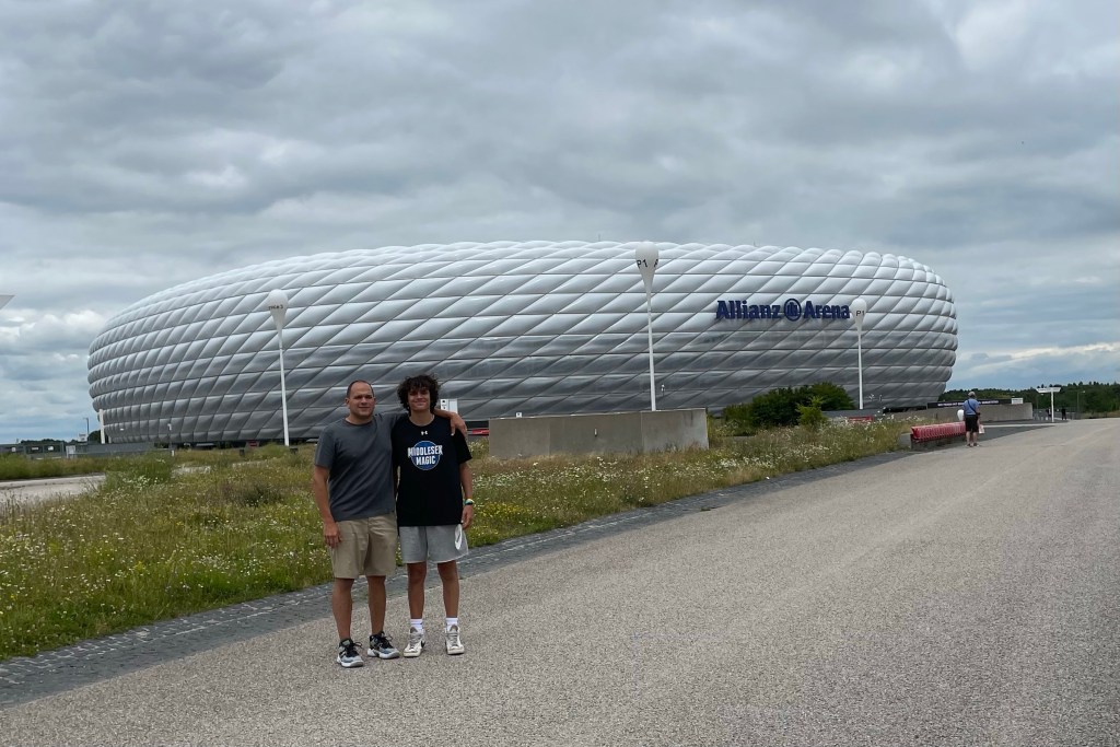 After a quick snack we hopped on the very clean U-Bahn train to Allianz Arena, home of the FC Bayern soccer team. Seats 70,000 yet feels intimate. We visited the museum and had an informative tour of the facility (similar to what we experienced a few years ago at Camp Nou in Barcelona). The tour guy spent time in W. Roxbury and was a Patriots and Celtics fan who was awake at 4:30am watching the Celtics in the recent NBA finals. Now that’s dedication!