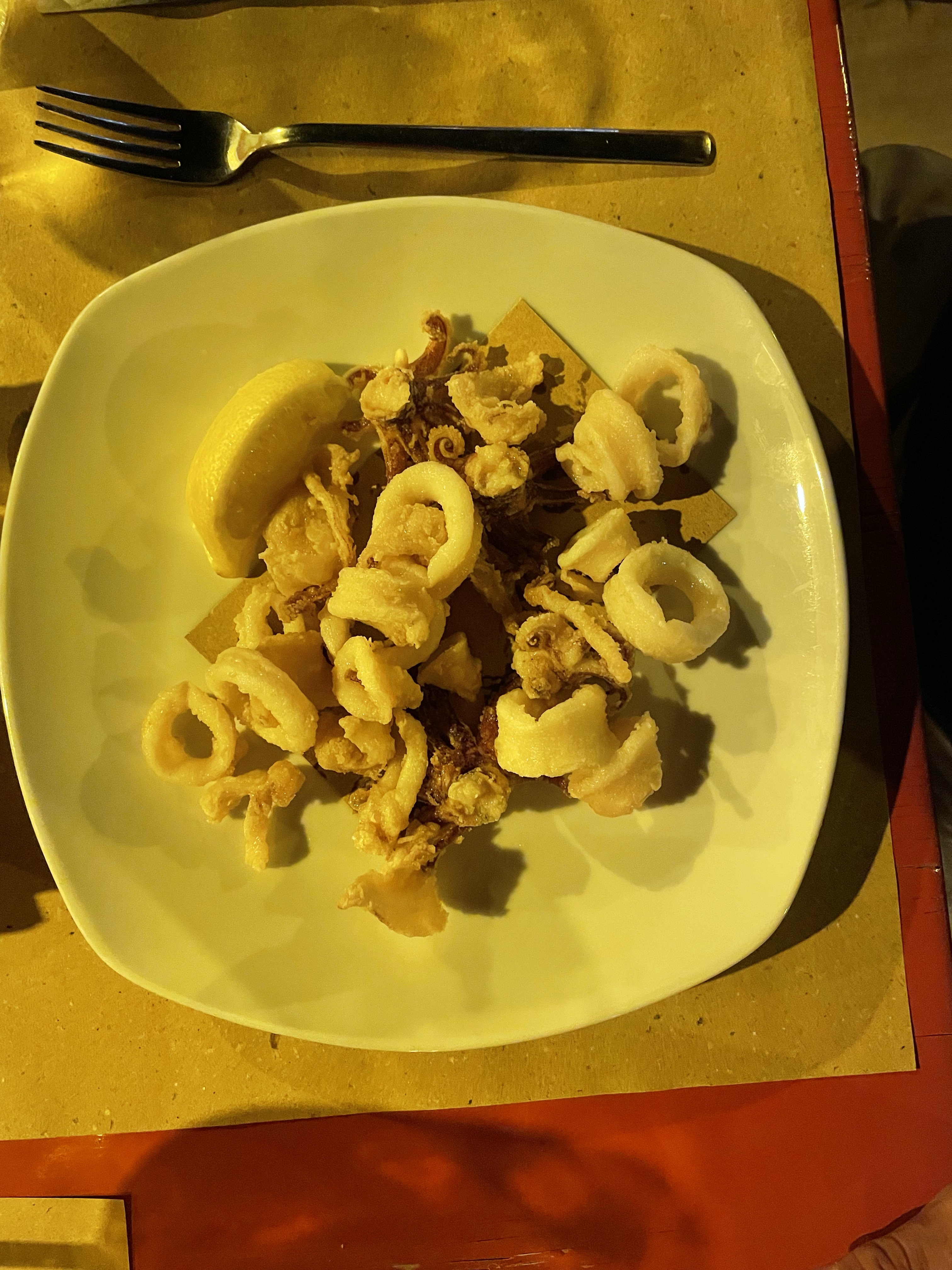 Tonight’s meal was also a limited, seafood based menu via chalkboard at the entrance. The waitstaff could verbally recite the options when you order, but we opted to take a pic of the menu at the entrance to think through translations and how to order in Italian.