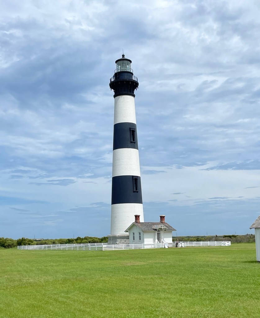 Fifth, at the beginning of the Cape Hatteras National Seashore, we stopped by the Bodie Island Lighthouse which is unique because of its black and white stripes and the light is visible 20 miles out to sea.